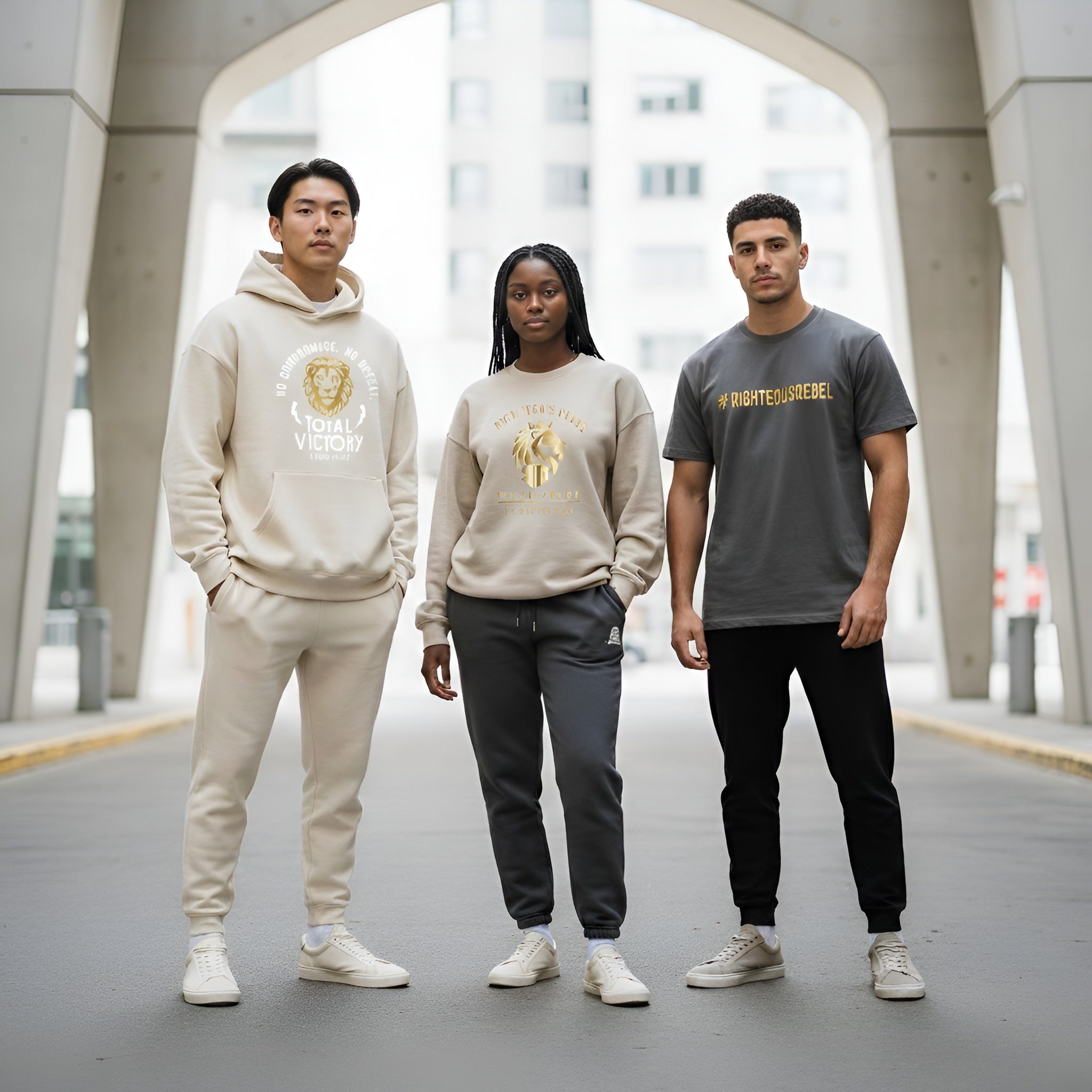 Righteous Rebel was born for those who refuse to blend in. What started as a single design — a declaration of faith and courage — became a movement for believers who live boldly and set apart. Every piece we create is more than apparel; it’s a statementof conviction. We design for those who walk against the current — believers who carry quietconfidence and steady conviction in everything they do.